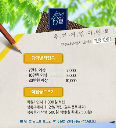 ¡Úȸ¿øÇýÅÃ:ȸ¿ø°¡ÀԽà 1,000¿ø Àû¸³/»óǰ ±¸¸Å½Ã 1~2%Àû¸³/º¸³Ê½º Ãß°¡Àû¸³ ÃÖ´ë1¸¸¿ø/»óǰÆò:500¿ø¾¿Àû¸³